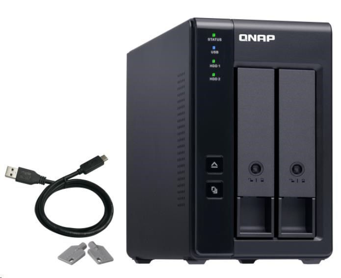 | Držiak disku | 2 x 3,5 palcový Systém je dodávaný bez HDD. Pre zoznam kompatibilných HDD navštívte https://www.qnap.com/compatibility/ |