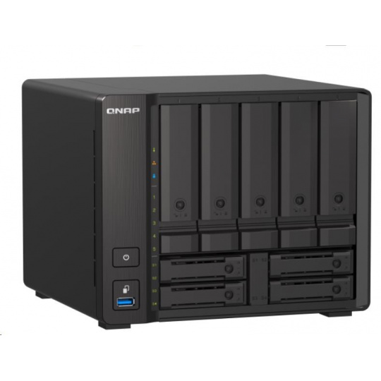 | Pozícia pre diskové jednotky | 5 x 3,5" + 4 x 2,5" Systém sa dodáva bez HDD/SSD. Zoznam kompatibilných diskov HDD/SSD nájdete na stránke https://www.qnap.com/compatibility/ |