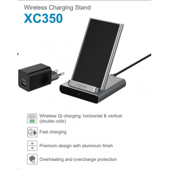 RAPOO nabíjací stojan XC350 Bezdrôtový nabíjací stojan strieborný