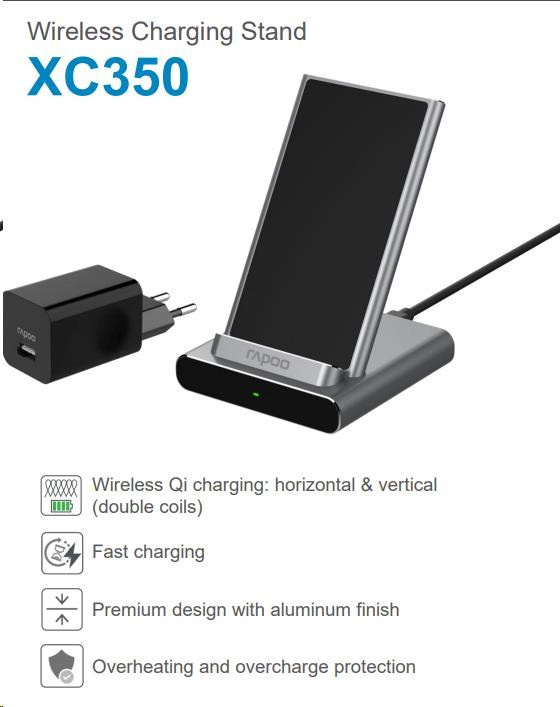 Táto bezdrôtová nabíjačka s prémiovým vzhľadom a povrchovou úpravou na báze hliníka dodá štýl a pohodlie každému pracovnému priestoru, kancelárii, spálni alebo obývačke. Jednoducho pripojte bezdrôtový stojan XC350 k napájaniu na preferovanom mieste a užívajte si bezstarostné nabíjanie bez ďalších napájacích káblov, ktoré by ste museli neustále kontrolovať, zapájať a odpájať. Nabíjací stojan nielen zjednodušuje nabíjanie, ale je tiež navrhnutý tak, aby zabezpečil rýchle a pohodlné nabíjanie s možnosťou umiestniť telefón vertikálne aj horizontálne vďaka širšej nabíjacej ploche (dvojité cievky). To je obzvlášť praktické, keď chcete telefón používať na sledovanie videí a obsahu počas nabíjania. Vďaka zabudovanej ochrane proti prehriatiu a prebitiu XC350 bezpečne nabíja aj váš smartfón. Odstránenie puzdra smartfónu nie je potrebné, pretože stojan bez problémov funguje aj s väčšinou puzdier na trhu. Dômyselný dizajn nezaberá miesto a krásne dopĺňa každé prostredie.