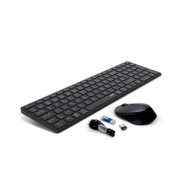 Táto ultratenká stolová súprava využíva prvotriedne materiály v elegantnom a kompaktnom dizajne, v ktorom však nechýba numerická klávesnica. Vďaka pevnej hliníkovej základni je telo klávesnice odolné a pevné. Zároveň dodá každému pracovisku štýlový nádych. Klávesnica E9700M nie je pokročilá len dizajnom, ale aj funkčnosťou. Ponúka technológiu viacrežimového pripojenia Rapoo - prostredníctvom spoľahlivého 2,4 GHz bezdrôtového vysielača, Bluetooth 3.0 a 5.0 - umožňuje súčasné pripojenie a prepínanie viacerých zariadení (s automatickým párovaním). Myš v tejto sade je vybavená vysoko výkonným optickým snímačom, plne nastaviteľným v rozsahu 600 až 1600 DPI a tichými spínačmi. Okrem toho je klávesnica vybavená ekologickou dobíjacou batériou, takže si môžete naplno užívať slobodu bez káblov.