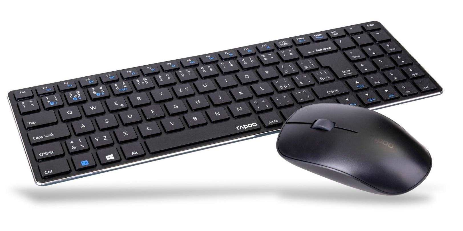 Súprava klávesnice a myši RAPOO 9300M, bezdrôtová viacrežimová tenká myš a ultratenká klávesnica, čierna