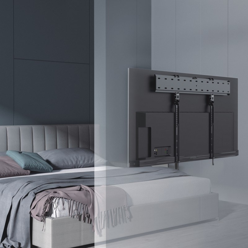 Nástenný oceľový držiak na OLED TV s uhlopriečkou 43"- 80" (109-203cm, rôzna hrúbka) a hmotnosťou maximálne 40kg. Konzola na zavešenie TV s vodováhou, nie je vertikálne výklopná, max. vzdialenosť od steny 18mm, materiál oceľ, zámok Spring Lock s páskou, cenovo výhodné, farba čierna. Uchytenie VESA: 200x200, 400x200, 300x300, 400x200, 400x300, 600x300.
