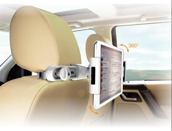 Držiak na 7-11" tablety v horizontálnej a vertikálnej polohe v aute pod opierkou hlavy. Pre cestujúcich na zadných sedadlách. Upevnenie z dvoch strán, otočenie tabletu o 360°, nastaviteľná montážna šírka 45-225 mm, plast, biela...