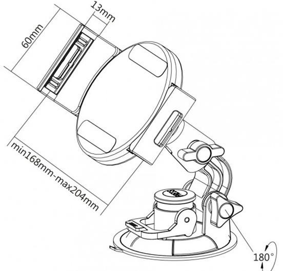 Držiak na čelné sklo pre 7-11" tablety v horizontálnej a vertikálnej polohe. Sklenený prísavný adaptér s guľovou hlavou na voľné nastavenie, otočný o 360°, obojstranné upevnenie, plast, biely...