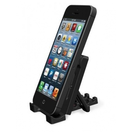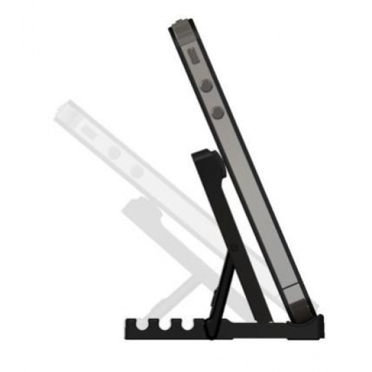 Stojan pre inteligentné dotykové telefóny v horizontálnej a vertikálnej polohe na stole. 5 nastaviteľných uhlov, skladací mechanizmus na jednoduchú prepravu, telefón položený na spodnej hrane, plastové vyhotovenie, čierna farba...