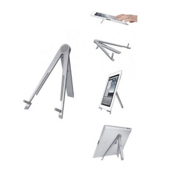 Stojan na 7-11" tablety v horizontálnej a vertikálnej polohe na stole. Plynule nastaviteľný sklon, robustná kovová konštrukcia, minimálna SLIM veľkosť v zloženom stave na jednoduchú prepravu, tablet sa opiera o spodný okraj, hliníkový povrch, strieborná farba...