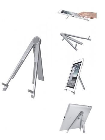 Stojan na 7-11" tablety v horizontálnej a vertikálnej polohe na stole. Plynule nastaviteľný sklon, robustná kovová konštrukcia, minimálna SLIM veľkosť v zloženom stave na jednoduchú prepravu, tablet sa opiera o spodný okraj, hliníkový povrch, strieborná farba...