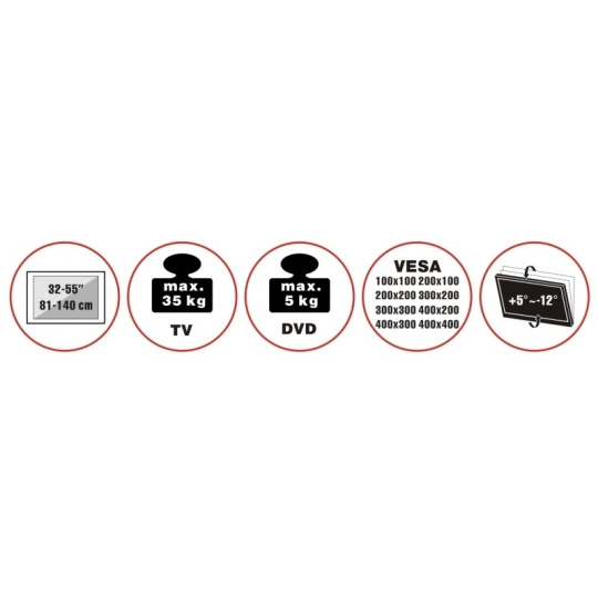 Televízny stolík na veľké TV s uhlopriečkou 32"- 55" (81-140cm) a hmotnosťou maximálne 35kg. Stredová nosná tyč 103-143cm na kolieskach s aretáciou, držiak vertikálne výklopný +5°/-12°, police 22x30cm max 5kg, Cable managment, rozmery 72x60,7x164,3cm, materiál oceľ, farba čierna. Uchytenie VESA: 100x100, 200x100, 200x200, 300x200, 300x300, 400x200, 400x400.