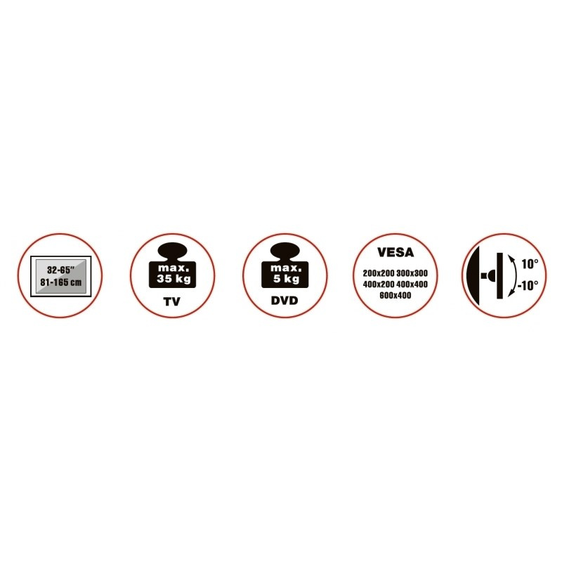 Televízny stolík na veľké TV s uhlopriečkou 32"- 65" (81-165cm) a hmotnosťou maximálne 35kg. Stredový nosný profil 120-160cm na kolieskach s aretáciou, držák vertikálne výklopný +0°/-10°, police 33x43cm max 5kg, Cable managment, rozmery 87x63x142cm, materiál hliník/ocel, farba čierna. Uchytenie VESA: 200x200, 300x200, 300x300, 400x200, 400x400, 600x400.