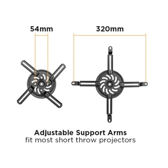 Nástenný držák na dataprojektory - vzdialenosť od steny 76-120 cm, prístroj je možné otáčať o 360° a nakloniť +/-15°, maximálna záťaž 15kg, kabelový prechod, biely. Univerzálny systém uchytenia dataprojektorov (rozsah 5,4-32 cm).