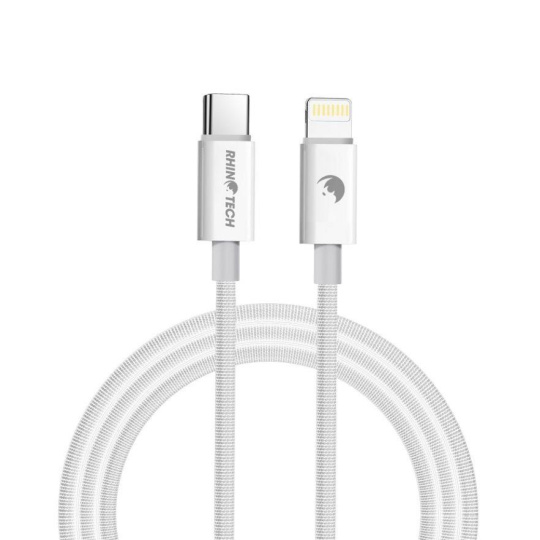 RhinoTech kabel s nylonovým opletem USB-A na Lightning 2,4A 1M bílá