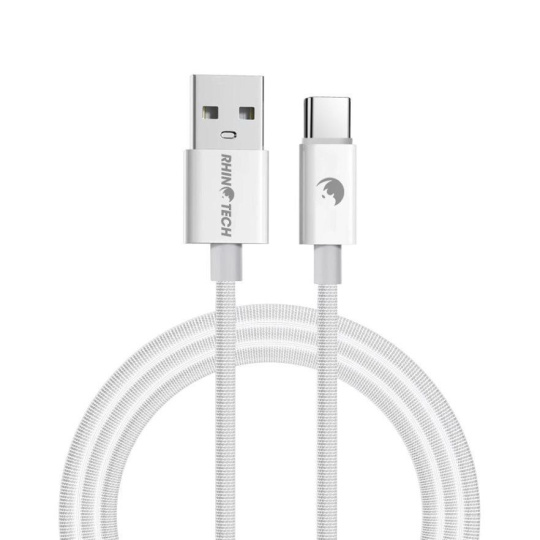 RhinoTech kabel s nylonovým opletem USB-A na USB-C 27W 1M bílá