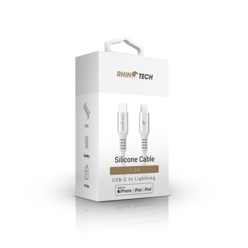 RhinoTech LITE MFi kabel s nylonovým opletem USB-C na Lightning 1.2m stříbrná