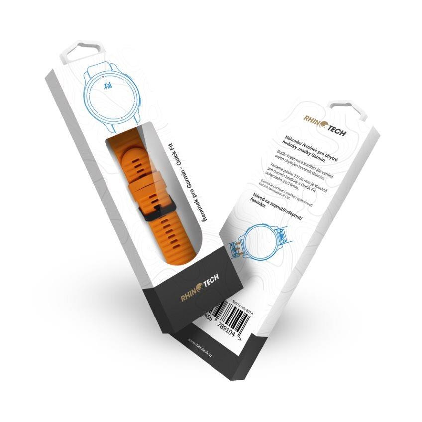RhinoTech řemínek pro Garmin QuickFit silikonový outdoor 26mm oranžový