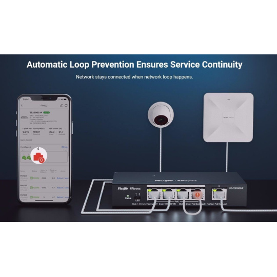 Popis produktu Inteligentní cloudově i přes webové rozhraní spravovatelný smart desktop switch RG-ES205GC od značky Ruijie, nabízí cenově efektivní řešení s 5 Gigabit LAN porty. Tento kompaktní přepínač je ideální pro síťové aplikace, které vyžadují výkon a spolehlivost. Co se výčtu funkcí týče, switch nabízí tichý chod bez ventilátorů, podporu až 16 VLAN, DHCP snooping, testování kabelu a ochranou proti zakruhování. Klíčové vlastnosti • 5× 10/100/1000 Mbps LAN porty • Kvalitní provedení, kovové šasi • Bez venilátoru • Nízká spotřeba - max. 3 W • Správa přes webové rozhraní a cloud • Celoživotní správa na Ruijie Cloud kdykoli a kdekoli • Rozpoznávání IP kamer - jedinečná hodnota pro CCTV síť • Automatická prevence proti zakruhování Obsah balení • Zařízení • Napájecí adaptér 5 V/1 A Technické parametry Konektory a rozhraní Rychlost LAN:(5) 10/100/1000Mbps Napájení Typ napájení:DC konektor Max. spotřeba energie [W]:3 Napájení přes konektor/svorkovnici:5V / 1A Fyzické charakteristiky Provedení:Desktop Ventilátory:Bez ventilátoru Šasi:Kovové Tlačítka:Reset Provozní teplota [°C]:0 až 40 Šířka [mm]:119 Výška [mm]:24 Hloubka [mm]:75 Obecné Rychlost přepínání [Gbps]:10 Tabulka MAC adres:2000 Rychlost předávání paketů [Mpps]:7,4 Software Web management:Ano Management:Webové rozhraní, Ruijie cloud Funkce:VLAN, DHCP snooping Výchozí IP adresa:10.44.77.200 Výchozí jméno a heslo:Nastavuje se při prvním spuštění.