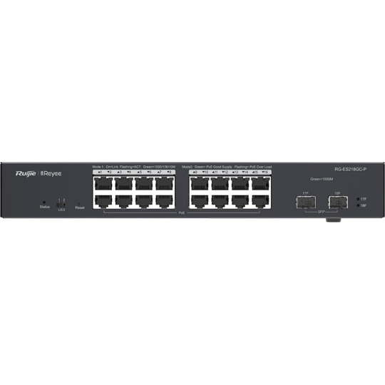 Reyee RG-ES218GC-P Smart mananged PoE switch, 16x PoE, 2x SFP