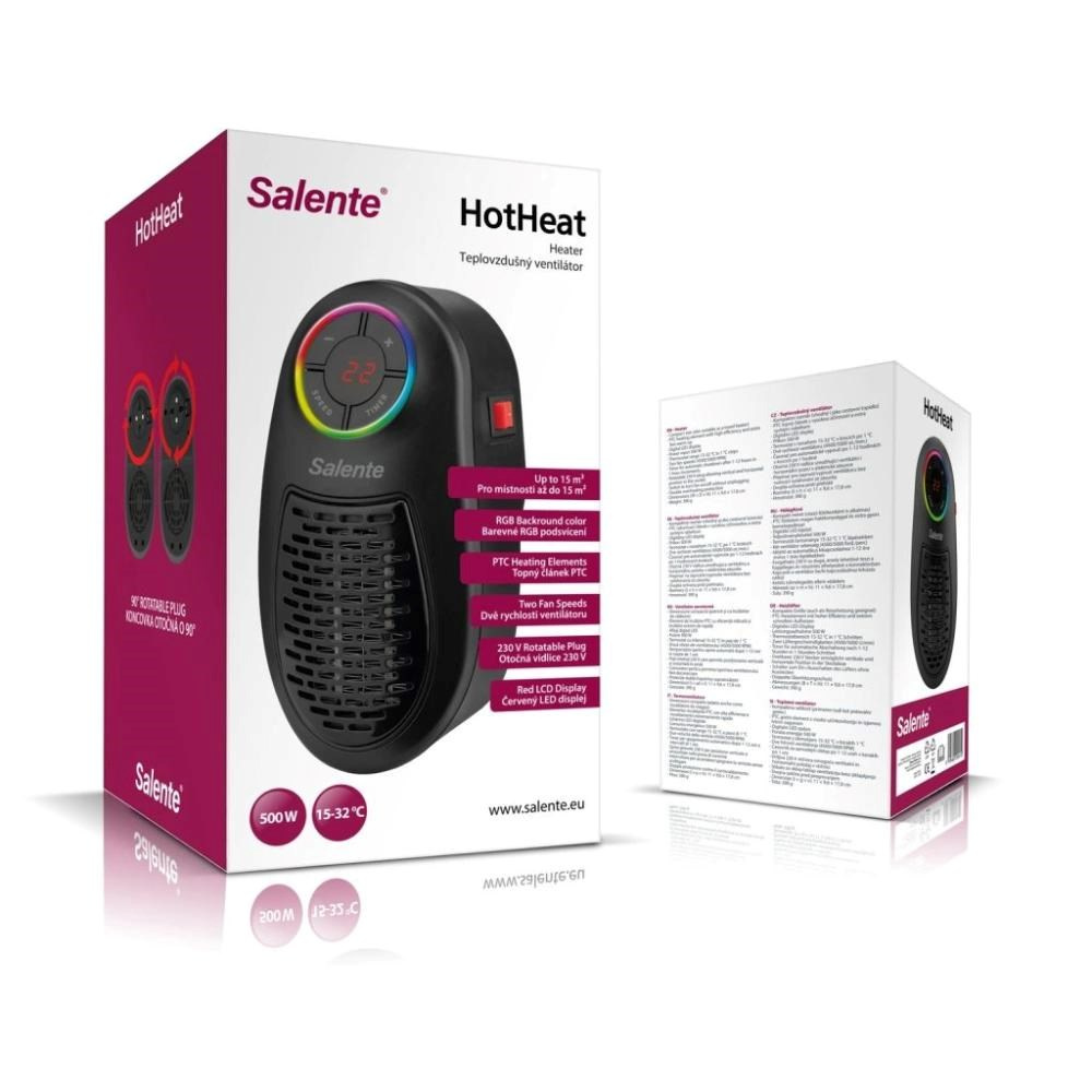 Topná sezóna ešte nezačala, ale vy už ráno vstávate s pocitom zimy? Nemáte radi, keď vám v chladnej kancelárii pri práci s počítačom mrznú prsty? Alebo si chcete pri zimnej výprave na chatu dopriať príjemné teplé oblečenie ihneď po svojom príchode? Nielen na uvedené situácie je tu Salente HotHeat – miniatúrny teplovzdušný ventilátor, ktorý dokáže podobné nepríjemné situácie takmer okamžite vyriešiť. Tento kompaktný prístroj (s rozmermi iba 11 × 9,6 × 17,8 cm a hmotnosťou 390 g) môžete nosiť napríklad v batohu. Ako náhle ho vybalíte a pripojíte do zásuvky, rýchlo ukáže svoju silu – prekvapivo rýchlo dokáže vyhriať miestnosť až do 15 metrov štvorcových.