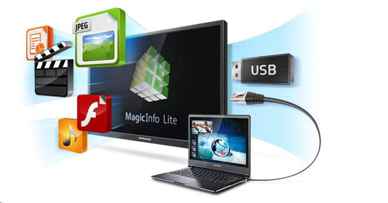 MagicInfo Lite je sofistikovaná technológia, ktorá umožňuje lokálnu alebo vzdialenú správu multimediálneho obsahu, ako sú videá alebo obrázky, ktoré môžete podľa potreby rôzne kombinovať a plánovať ich zobrazenie v požadovanom čase. Toto riešenie umožňuje používať veľkoformátový displej ako samostatnú jednotku bez nutnosti použitia externého prehrávača. Obsah je možné prehrávať z interného pamäťového zariadenia monitora, externého USB alebo vzdialene prostredníctvom vzdialeného servera.