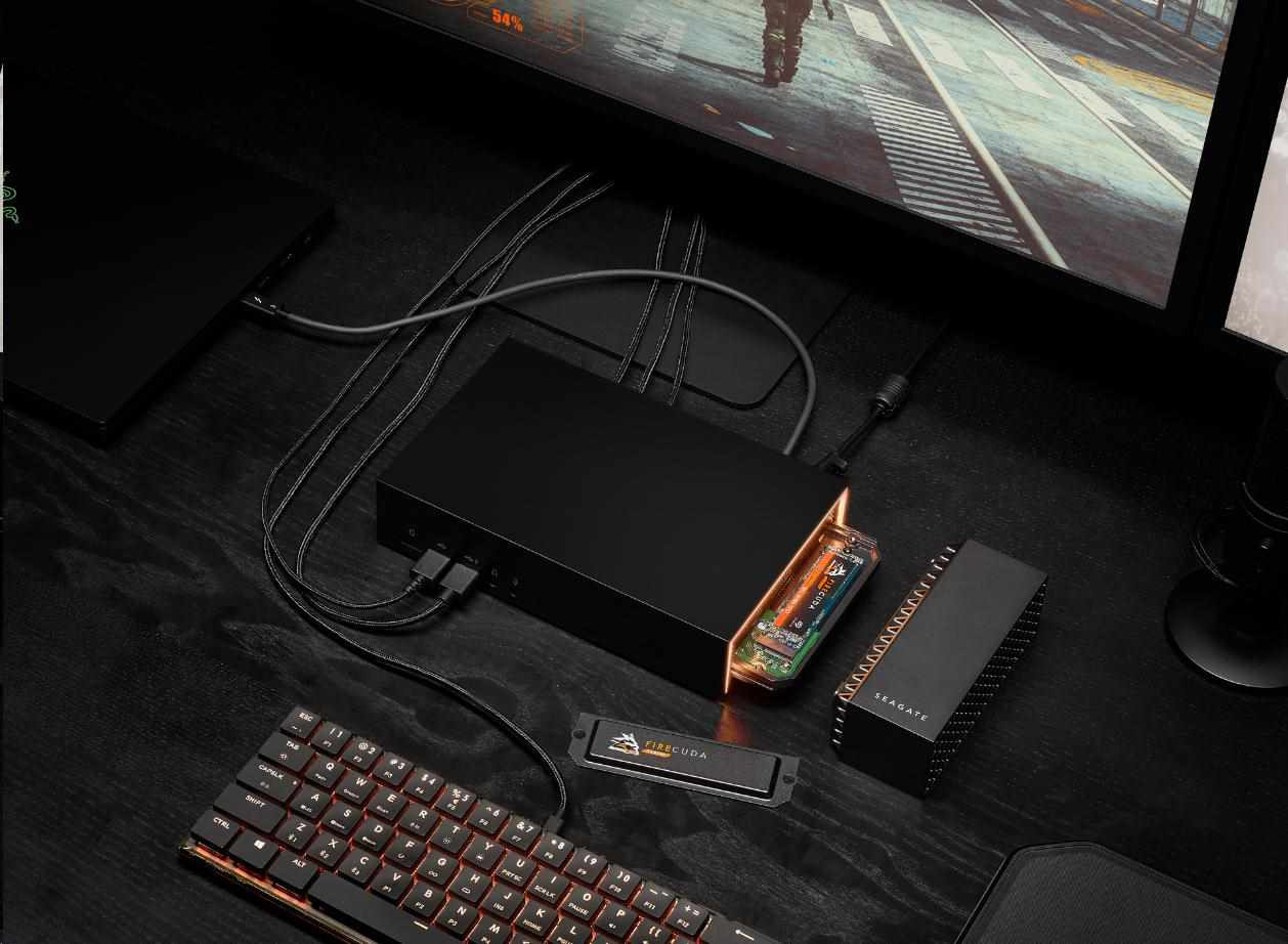 Hrajte tvrdšie s Seagate® FireCuda® Gaming Dock, elitným 4TB úložným hubom, ktorý spája celú stolnú hernú stanicu – klávesnicu, myš, USB slúchadlá, webkameru, monitor displeja a ďalšie – prostredníctvom jedného kábla Thunderbolt 3. Zapojte ho do notebooku a použite rozšíriteľný slot M.2 NVMe na prácu s upgradem FireCuda 510 NVMe SSD pre rýchle spúšťanie aplikácií a načítanie doby. Je dokonca vybavený prispôsobiteľnými RGB LED svetlami pre rovnomerné osvetlenie.