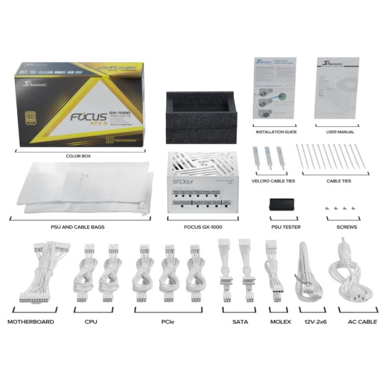 SEASONIC zdroj 1000W Focus GX-1000 White, 80+ GOLD, ATX 3.1, PCIe 5.1