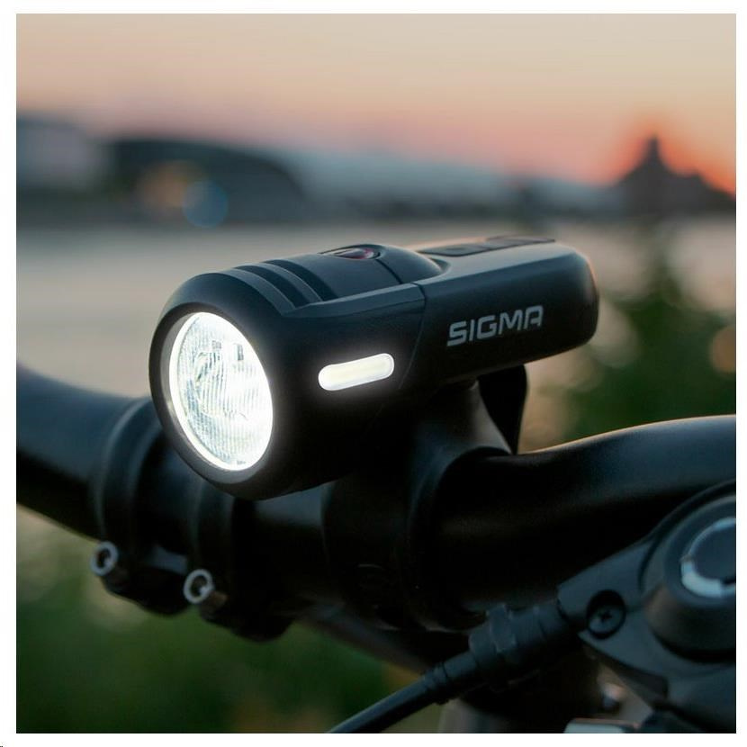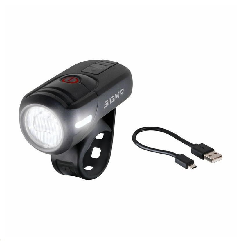 Aura 45 USB je prvé svetlo Sigma, ktoré myslí! V automatickom režime integrovaný senzor jasu automaticky upravuje intenzitu svetla podľa okolitého svetla v rozmedzí od 15 do 45 luxov a zabezpečí tak najdlhšiu možnú dobu svietenia.