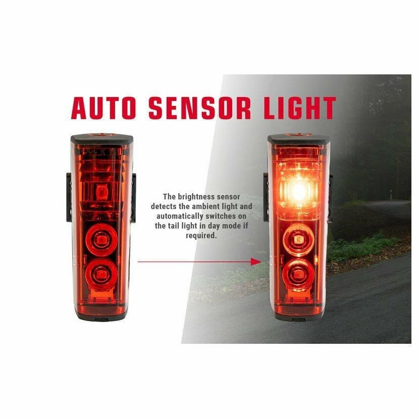 Senzor jasu detekuje okolité intenzity svetla a podľa potreby automaticky zapína a vypína zadné svetlo. Šetrí tak batériu a je ideálne pre situácie, ako sú prechody tunelmi alebo jazda na tmavých lesných cestách.