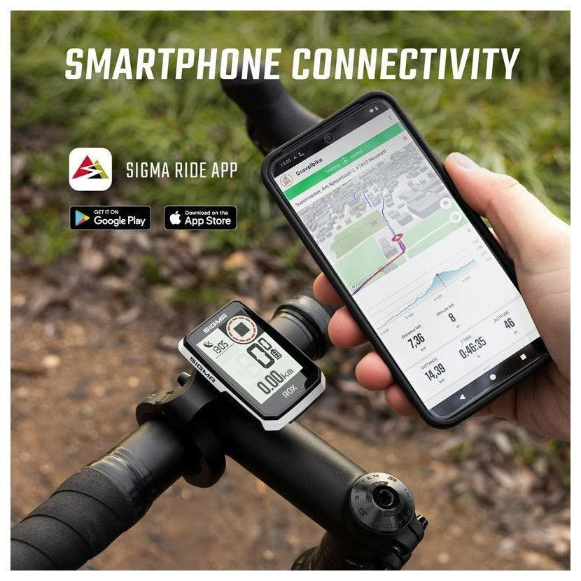 Prostredníctvom Bluetooth je možné odosielať údaje z cyklopočítača do smartfónu a v aplikácii SIGMA RIDE ich ukladať a vyhodnocovať. Na smartfóne je možné nastaviť obľúbený vzhľad displeja. Najdôležitejšie údaje a štatistiky je možné zobrazovať pomocou funkcie LIVE v aplikácii SIGMA RIDE a pohodlne vyhodnocovať aj v reálnom čase na smartfóne.
