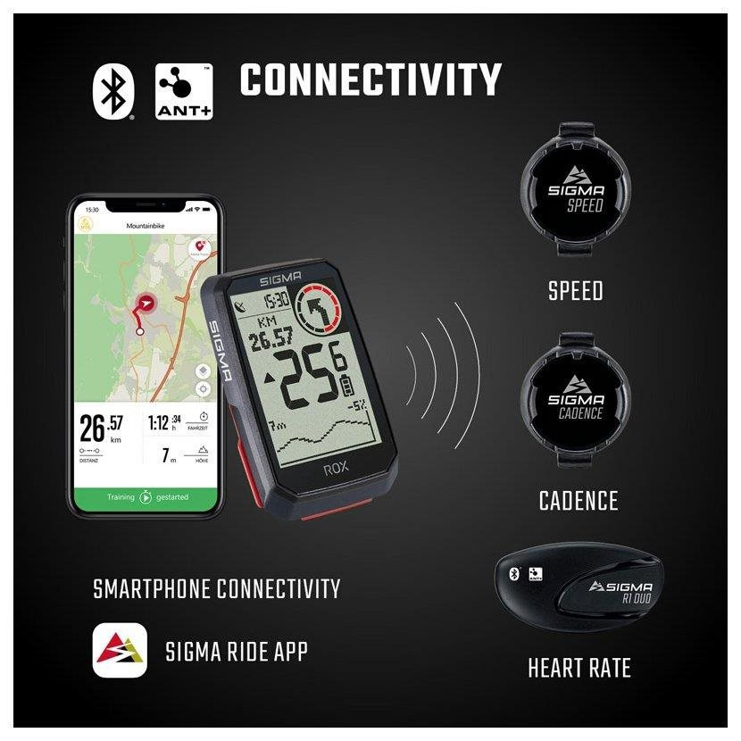 Cyklopočítač ROX 4.0 GPS je so svojimi 30 funkciami a jednoduchým ovládaním veľkým pomocníkom cyklistu na jeho výletoch a umožňuje mu sústrediť sa na to najdôležitejšie: radosť z jazdy. Extra veľký displej ukazuje údaje ako výškový profil, rýchlosť, vzdialenosť a tréningový čas. Navigačné pokyny a pripojenie k e-biku a externým čidlám nie sú pre cyklopočítač ROX 4.0 žiadny problém! Vďaka bezplatnej aplikácii SIGMA RIDE je možné aktuálne údaje jazdy sledovať a analyzovať v aplikácii SIGMA RIDE na smartfóne.