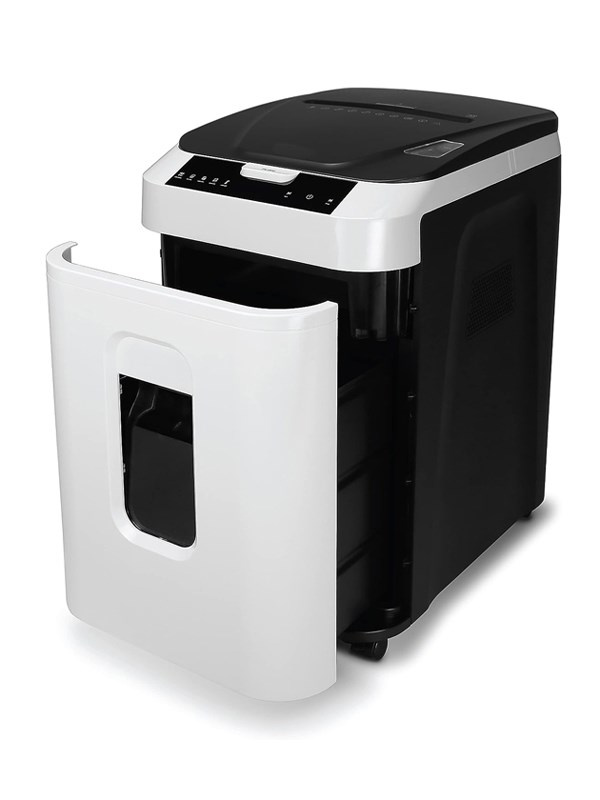 Atraktívne navrhnutá skartovačka pre stredne veľké kancelárie. Vhodný na skartovanie dokumentov so šírkou 240 mm. Stroj je štandardne vybavený automatickým systémom štart/stop, spätným chodom, tepelnou ochranou proti prehriatiu motora a alarmom preplneného koša. Príležitostne je možné skartovať sponky, kreditné karty a CD. Veľmi tichá prevádzka stroja. Nádoba na odpad s priehľadným okienkom. Prístup na CD a kreditnú kartu. Separovaný odpad. Pojazdné kolieska na ľahkú manipuláciu. Farba sivo-biela Hmotnosť (kg) 25 Kapacita (listy 70g/m2) 15 Objem koša (L) 38 Pracovná šírka (mm) 240 Príkon W/V 530/230 Rozmery (mm) 404 x 350 x 667 Rozmery rezu (mm) 2 x 10 Rýchlosť (mm/s) 50 Zošívačky, sponky, CD a platobné karty Funkcia štart/stop Áno Stupeň utajenia GDPR P5 - osobné údaje zamestnancov, majetok, mzda Typ rezu Krížový rez Záruka (mesiace) 24 Reverzácia Áno..