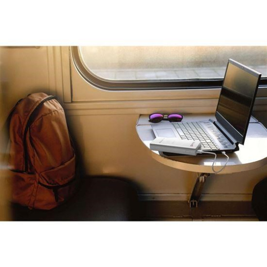 Prednabité a s priloženým 30cm USB-C káblom je okamžite pripravená na použitie. Tri výkonné USB-C a USB-A porty umožňujú nabíjať až tri zariadenia súčasne. Notebook sa nabíja samostatne cez najsilnejší USB-C 65W. Šesťnásobná bezpečnostná ochrana zabezpečuje bezpečné používanie a dlhú životnosť batérie.