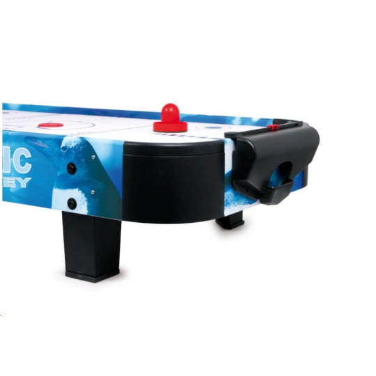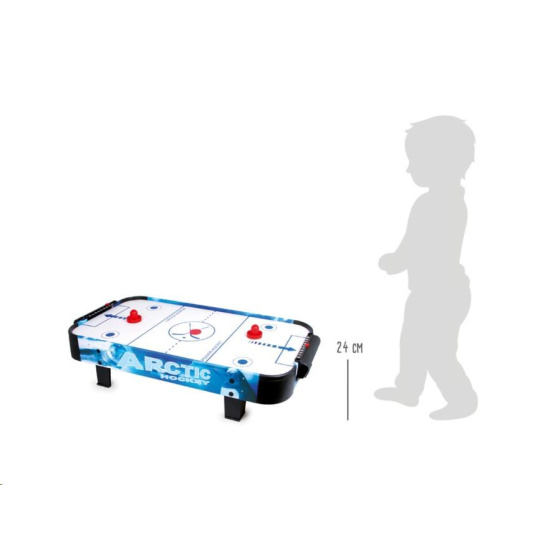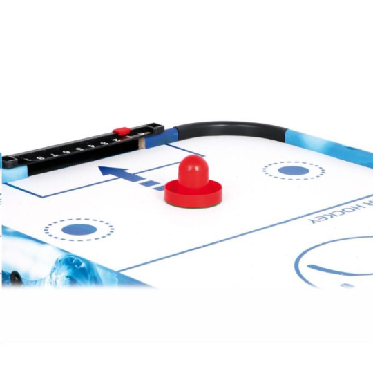 Populárny vzdušný hokej preverí pohľad a rýchlosť detí. Vďaka vzduchu vháňanému zospodu zabudovaným ventilátorom môže puk hladko, ale hlavne bleskurychle kĺzať po hernej ploche. Hráči majú k dispozícii kuželové palice, ktorými sa snažia vsrieť puk do súperaovej bránky. Palice sú na spodnej strane opatrené filcom pre jednoduchý a tichý pohyb. Bránka každého z hráčov je vybavená jednoduchým číselníkom na zaznamenávanie priebehu zápasu. Hru možno vďaka jej veľkosti ľahko odložiť, prenášať, alebo aj vziať na cesty. Napájanie je zabezpečené adaptérom so štandardnou európskou zástrčkou na 220–240 V. Výrobok vyžaduje montáž, dodávaný s obrázkovým návodom na zostavenie.