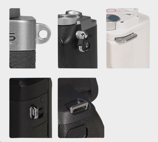 Zápästný popruh sa inštaluje prepletením lana priamo slučkou ramenného popruhu fotoaparátu, ktorá je kompatibilná s väčšinou rozhraní ramenných popruhov fotoaparátu.
