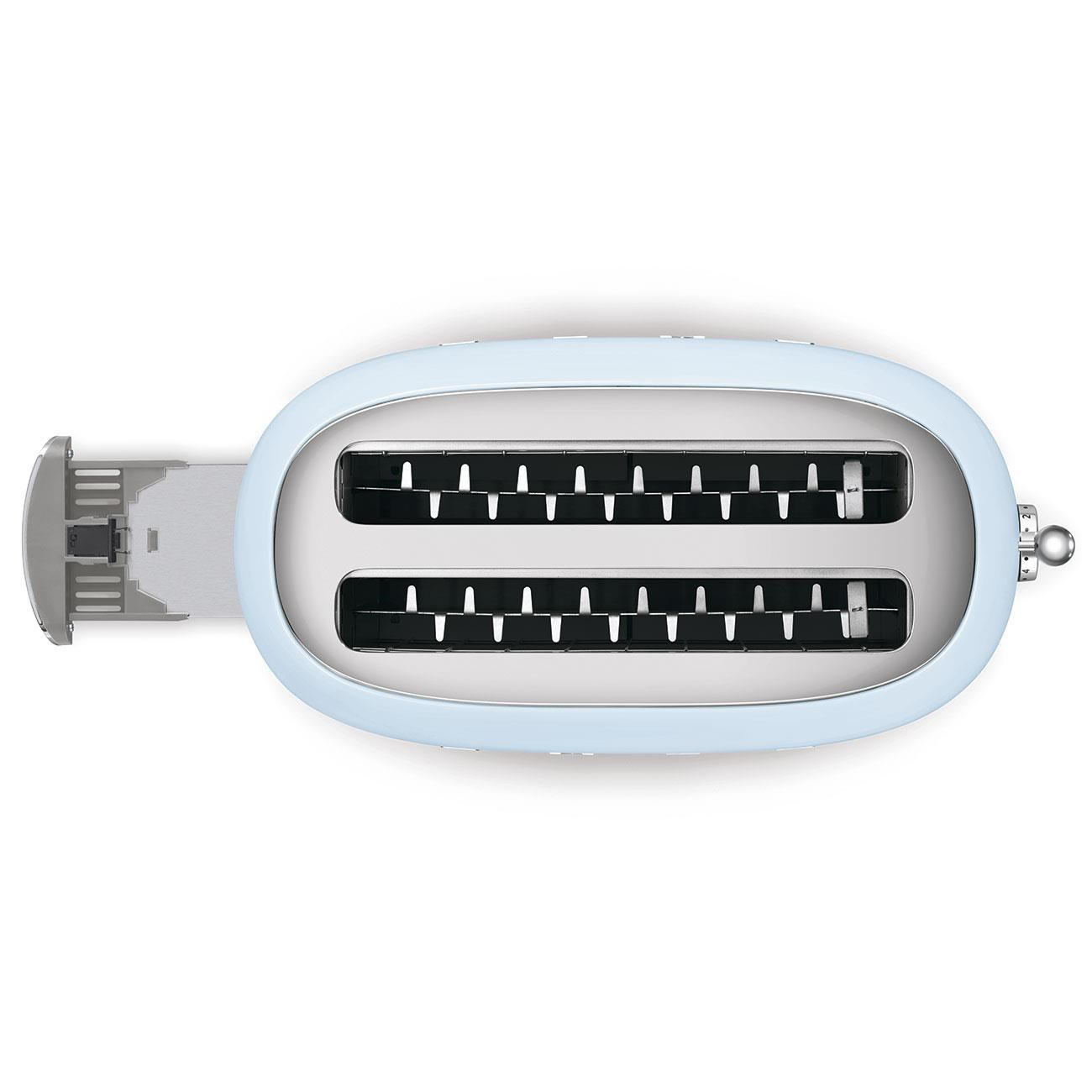 Smeg TSF02PBEU, toustovač / topinkovač, 4 toasty, 6 úrovní opékání, zásuvka na drobky, styl. 50. let, pastelově modrý