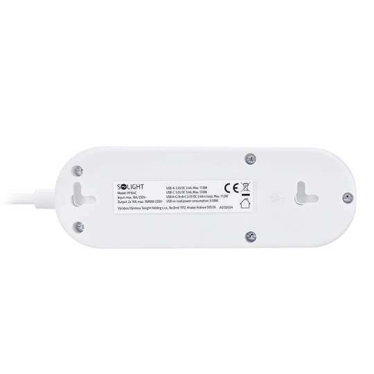 .Solight 2z + USB A+C 17W, cestovní prodlužovací přívod 1.5m, bílý