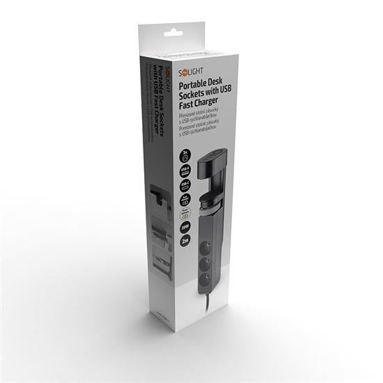 .Solight 3z + USB A+C přenosné stolní zásuvky, 2m, černá, USB rychlonabíječka 20W PD
