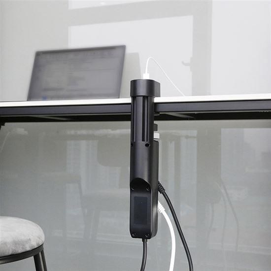 zásuvky 230V schované pod stolom, USB nabíjačka a centrálny vypínač prístupné shora