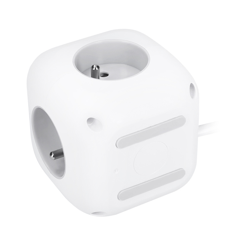 Premyslené rozmiestnenie zásuviek umožňuje ľahké pripojenie rôznych prívodných šnúrok aj objemných napájacich adaptérov bez vzájomného prekážania. Elegantný kockový dizajn so zaoblenými hranami, bielym telom a šedými zásuvkami sa hodí do každého prostredia – či už ide o kanceláriu, domácnosť alebo pracovnú dielňu.