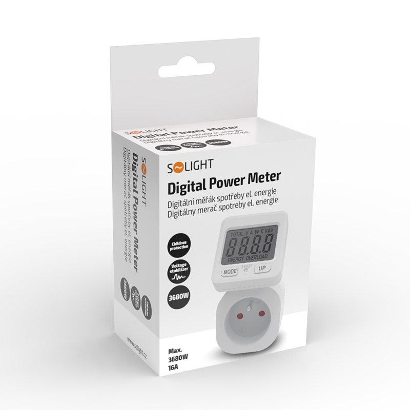 Potrebujete poznať presnú spotrebu elektrickej energie vášho zariadenia? V tom prípade pre vás máme tento praktický meriač spotreby Solight DT26. Stačí ho zapojiť do zásuvky a priamo do meriača pripojiť vybrané zariadenie. Tento šikovný pomocník dokáže presne merať napätie a okamžitý odoberaný výkon. Všetko je zobrazené na prehľadnom 2" displeji a jednoduché ovládanie je realizované pomocou tlačidiel. Veľkou výhodou je možnosť nastavenia ceny za energiu, čím dosiahnete presný výpočet celkovej ceny za energiu daného spotrebiča.