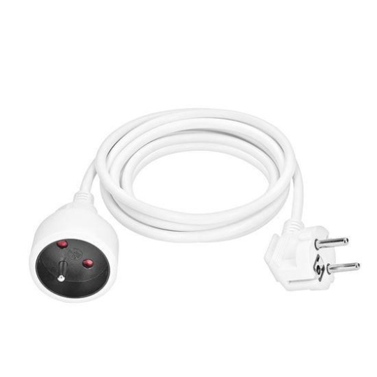 Kompaktný biely predlžovací kábel s dĺžkou 2 metre a jednou zásuvkou je ideálny pre jednoduché predĺženie elektrickej energie v domácnosti, kancelárii alebo dielni. Vhodný na pripojenie samostatného zariadenia mimo dosah pevnej zásuvky.