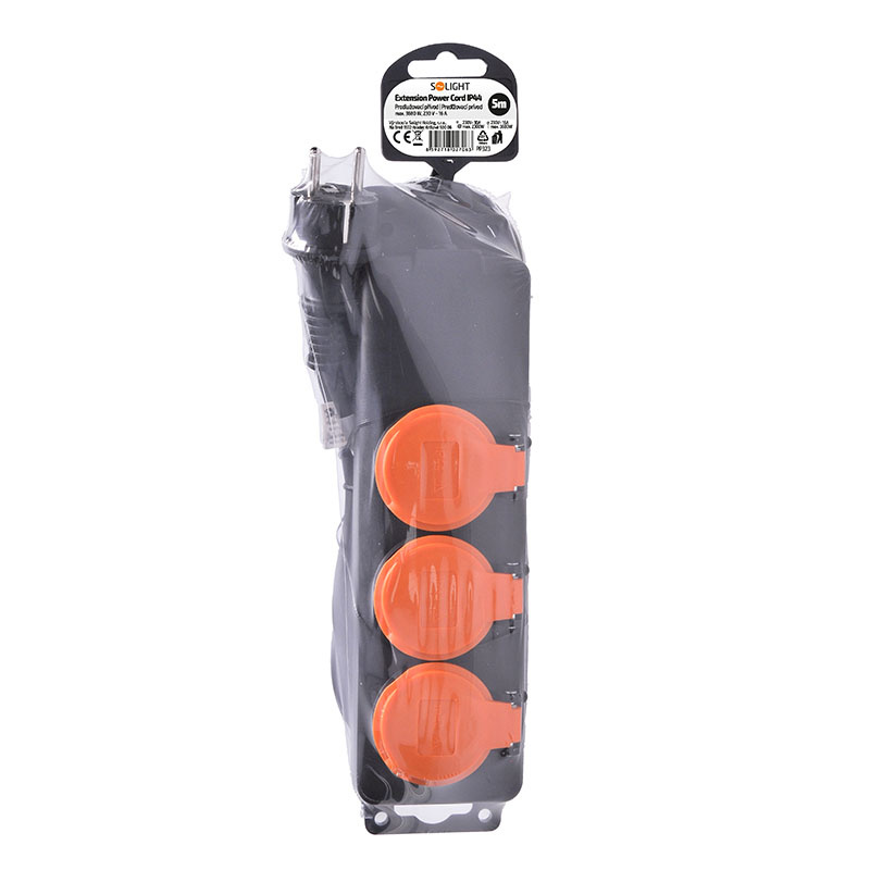 .Solight prodlužovací přívod IP44, 3 zásuvky, gumový kabel, venkovní, 5m