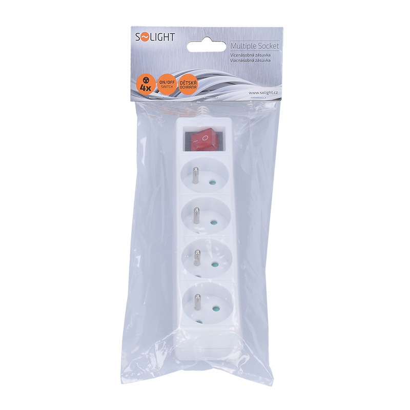 Solight vícenásobná zásuvka, 4 zásuvky, vypínač