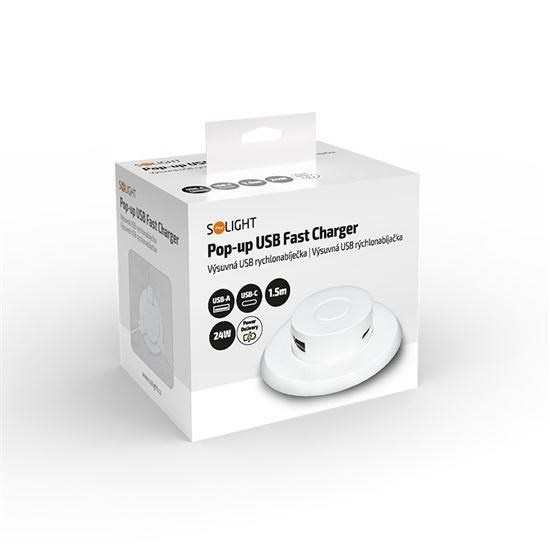 .Solight výsuvná nabíječka USB A+C 24W PD, bílá