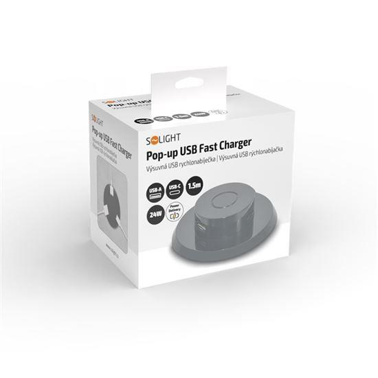 .Solight výsuvná nabíječka USB A+C 24W PD, černá