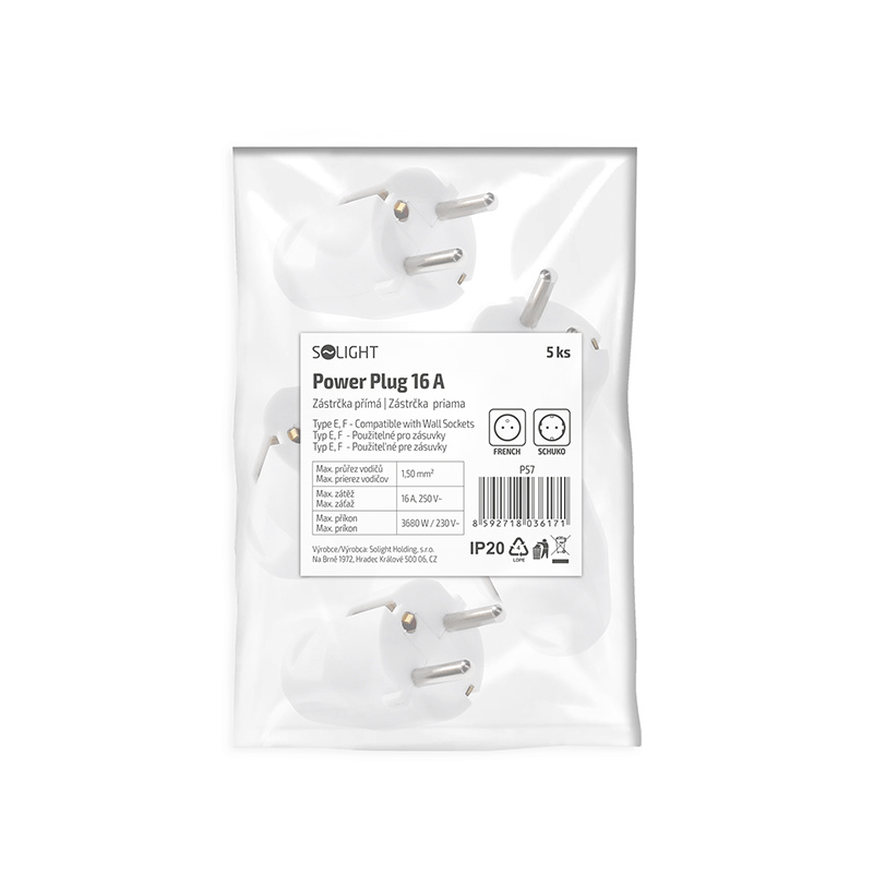 Solight zástrčka přímá, IP20, bílá