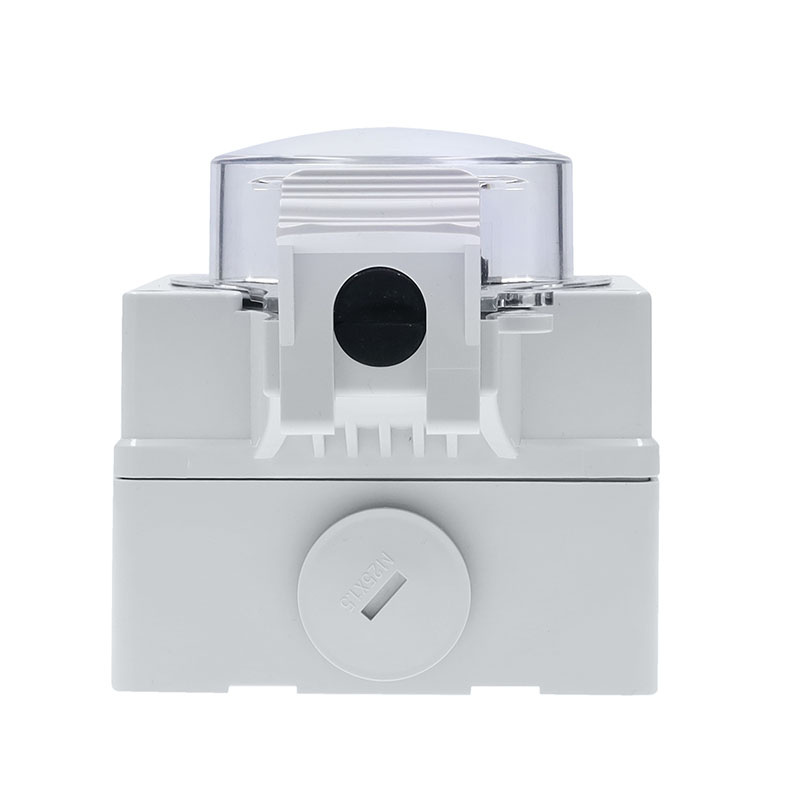 Priehľadné veko zásuvky je možné uzamknúť visacím zámkom, čo chráni pred nechcenou manipuláciou a zvyšuje bezpečnosť. Predĺžená krytina chráni časť kábla a zároveň slúži aj ako páka na jednoduchšie uzatvorenie víka. Gumené tesnenie a zátky zabezpečujú dokonalé utiahnutie proti vode a prachu. Konštrukcia je navrhnutá tak, aby odolala intenzívnym klimatickým podmienkam, čím zabezpečuje dlhodobú spoľahlivosť a bezpečnosť pri používaní.