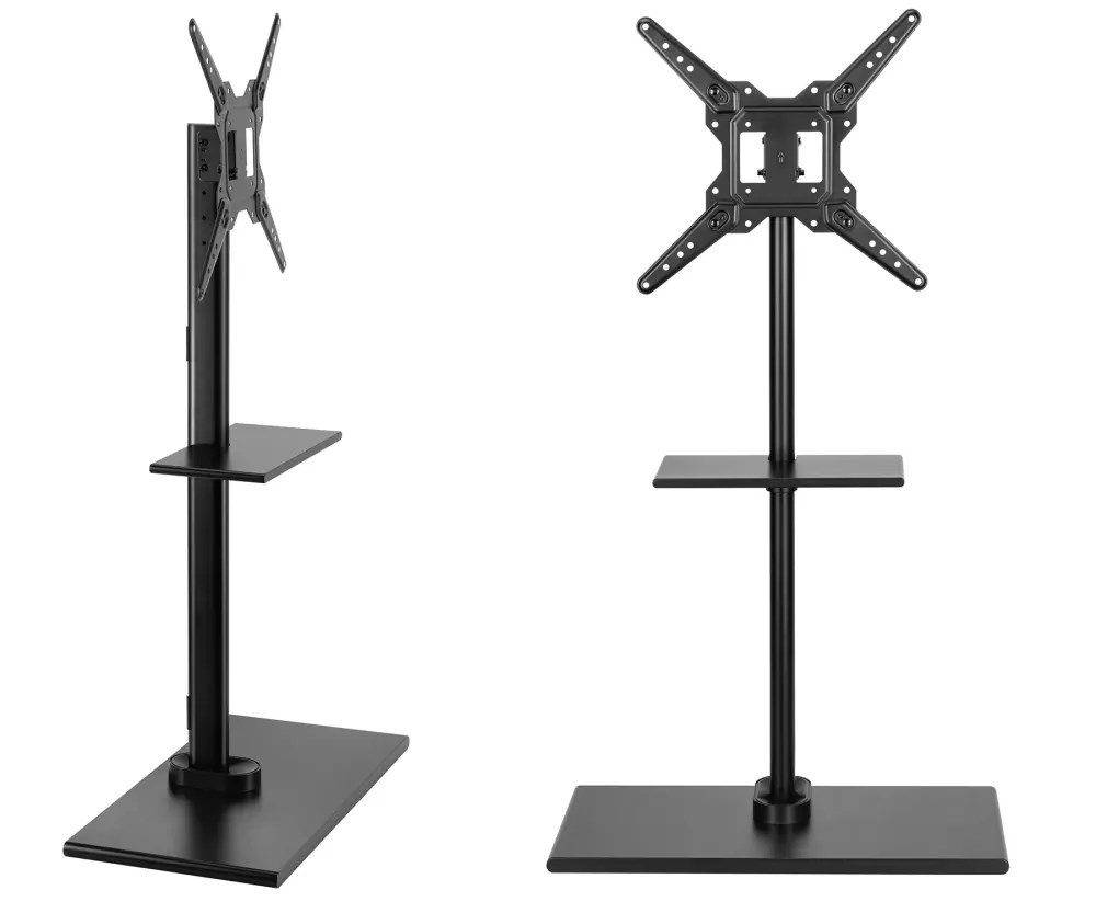 Podlahový stojan / stolík na TV i monitory 23" - 55", nastavenie výšky 868 / 908 / 948 / 988 / 1028 / 1068mm, náklon +6° / -6°, podstavec 700 x 350mm, polička 380 x 190mm s nastaviteľnou výškou 220 - 770mm, inštalačný materiál, vedenie káblov, VESA 100x100 až 400x400, nosnosť 35kg