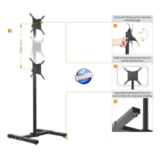 Stojan na televíziu alebo monitor Fiber Mounts FM11    Kvalitný stojan na TV alebo monitor 13-43", nastavenie výšky 750-1240mm, naklonenie obrazovky 0-30°, korekcia roviny, VESA 75x75 až 200x200, nosnosť 20kg    Kvalitný a elegantný podlahový stojan na televíziu, monitor alebo dotykové displeje s uhlopriečkou 13-43" (prípadne aj väčšie), nastaviteľná výška 750-1240mm a možnosť nastavenia sklonu 0-30°. Stojan podporuje VESA štandardy 75x75 až 200x200 a je vhodný na obrazovky s hmotnosťou až 20kg. Výborná stabilita, ľahké nastavenie do požadovanej polohy, kovová konštrukcia. Farebné prevedenie čierne, záruka 10 rokov.     Stojan na televíziu, monitor, displej 13-43" Fiber Mounts FM11     Technické údaje:   nosnosť 20kg podporuje VESA štandardy 75x75 až 200x200 ideálny na televízie, monitory a displeje s uhlopriečkou 13" až 43" nastaviteľná výška 750mm až 1240mm nastaviteľný náklon obrazovky 0° až +30° korekcia roviny +/- 3° rozmery podstavca 502x454mm (šírka x hĺbka) kvalitná kovová konštrukcia výborná stabilita farebné prevedenie čierne záruka 10 rokov