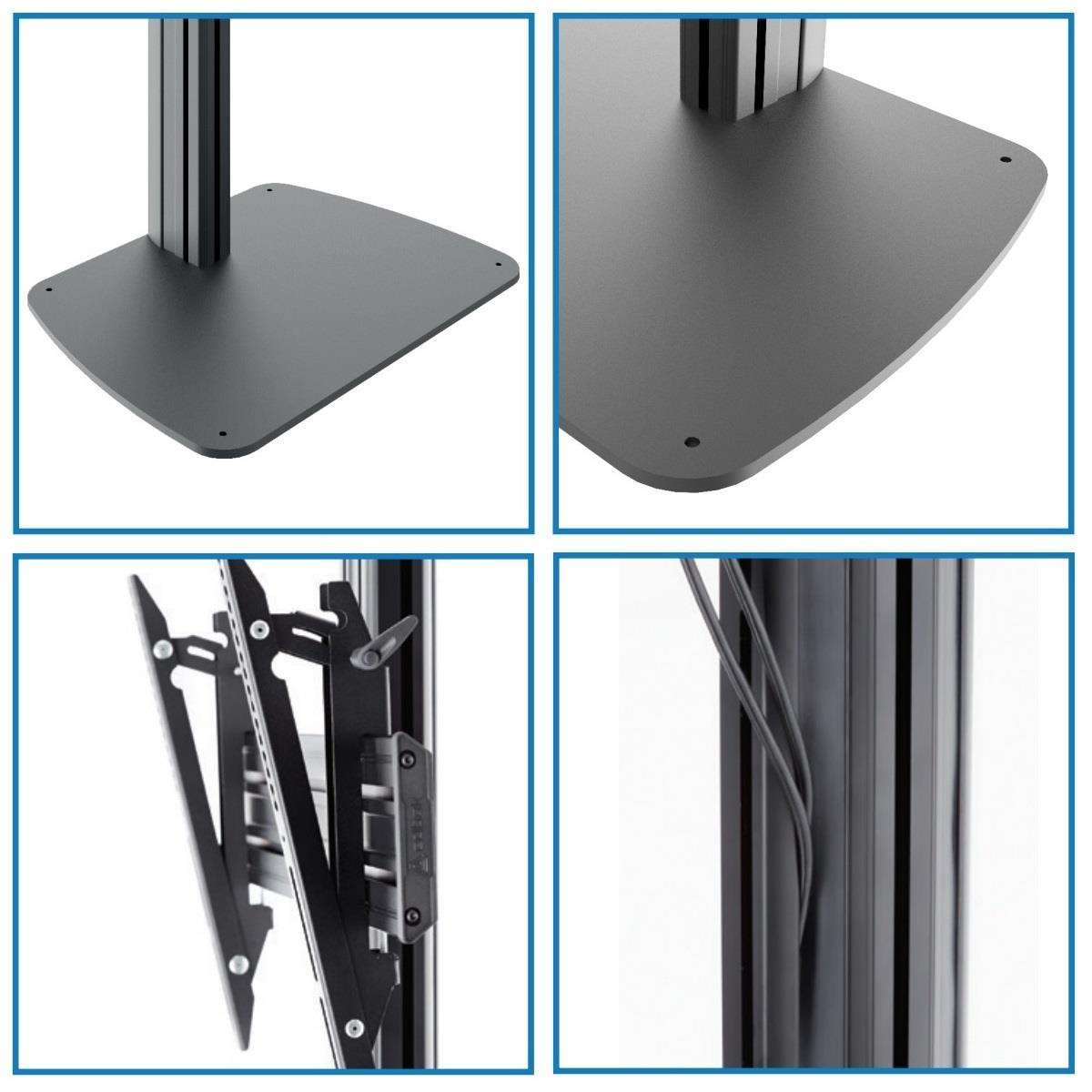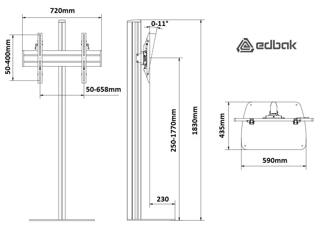 Profesionálny TV stojan Edbak STDV100 Stojan na TV a monitory 40-75", nastaviteľná výška obrazovky 250-1770mm, náklon 0°/-11°, vedenie káblov, VESA 75x75 až 600x400, nosnosť 80kg, Profesionálny dizajnový stojan na zavesenie televízorov, monitorov a dotykových obrazoviek s uhlopriečkou 40" až 75". Stojan je vyrobený z hliníka, podstava je z liatiny o rozmeroch 590x435x10mm. Podstavu je potrebné ukotviť do podlahy alebo pripraveného podstavca - nie je samostatne stojaci. Obrazovky je na stojane možné nastaviť do požadovanej výšky od 250mm až do 1770mm (vzdialenosť od podlahy po stred obrazovky) a nastaviť náklon od 0° až do -11°. Stojan je možné zakúpiť vrátane polici na príslušenstvo a police na kameru. Stojan podporuje VESA štandardy 75x75 až 600x400 a má nosnosť 80kg. Materiál hliník a liatina. Police sú kovové. Inštalačný materiál. Záruka 5 rokov. Profesionálny dizajnový podlahový stojan na televízory, monitory a dotykové obrazovky Edbak STDV100 Technické údaje: nosnosť 80kg podporuje VESA štandardy 75x75 až 600x400 na televízory, monitory a dotykové obrazovky 40" až 75" celková výška stojanu 1830mm nastaviteľná výška obrazovky 250-1770mm (od podlahy po stred obrazovky) nastaviteľný náklon obrazovky 0° až -11° podstava s otvormi na ukotvenie do podlahy rozmery podstavy 590x435x10mm možnosť zakúpenia aj s polici na príslušenstvo 400x300mm, nosnosť 10kg možnosť zakúpenia aj s polici na kameru 250x200mm, nosnosť 10kg materiál hliník a liatina profesionálny výrobok najvyššej kvality farebné prevedenie čierne záruka 5 rokov Detaily TV stojanu Edbak STDV100 TV stojany Edbak STDV100 podporujú VESA štandardy: VESA 75x75 VESA 100x100 VESA 200x100 a 100x200 VESA 200x200 VESA 300x200 a 200x300 VESA 300x300 VESA 400x200 a 200x400 VESA 400x300 a 300x400 VESA 400x400 VESA 600x400 Stojan je možné zakúpiť vrátane polici na príslušenstvo a police na kameru. Police sú kovové a majú nosnosť 10kg.