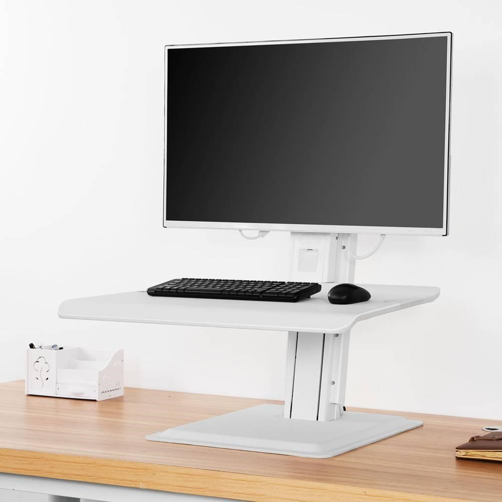 Stolný stojan na monitor, klávesnicu a myš NB ST15W Ergonomická pracovná stanica - stolný stojan na monitor 19-32", s policou na klávesnicu a myš, výškové nastavenie pre prácu vstoja alebo sedu, nastavenie výšky, sklonu a rotácie monitora, VESA 75x75 a 100x100, nosnosť 11kg Profesionálna pracovná stanica pre moderné kancelárie - rýchla a jednoduchá zmena polohy pre prácu vsed alebo vstoje vďaka pokročilému systému zmeny výšky. Stojan podporuje VESA štandardy 75x75 a 100x100, umožní Vám rýchlu zmenu výšky +/- 45cm. Nastavenie polohy samotného monitora: úprava výšky od police +/- 11cm, náklon +3°/-15°, horizontálne alebo vertikálne otočenie. Nosnosť 11kg. Profesionálna konštrukcia, estetický dizajn, luxusné biele prevedenie. Systém pre vedenie káblov. Záruka 5 rokov. Stolný stojan na monitor s nastavením výšky pre prácu vestoja alebo sedu NB ST15W Technické údaje: nosnosť 11kg na monitory s uhlopriečkou 19-32" podpora VESA štandardov 75x75 a 100x100 rýchle nastavenie výšky pre prácu v sedu alebo vstoja +/- 45cm pokročilý systém výškového polohovania - jednoducho, rýchlo, bez náradia výškové polohovanie samotného monitora 110mm polica na klávesnicu a myš s rozmermi 690x495mm základňa s rozmermi 450x480mm (minimálny potrebný priestor na stole) nastavenie náklonu monitora +3° / -15° systém pre skryté vedenie káblov esteticky ukrytý USB port profesionálna pracovná stanica najvyššej kvality vynikajúca stabilita krásny dizajn v bielom prevedení záruka 5 rokov Polohovateľný stolný stojan na monitor, klávesnicu a myš pre prácu vestoja alebo sedu NB ST15W Stolný stojan na monitor NB ST15W podporuje VESA štandardy: VESA 75x75 VESA 100x100 Pracovná stanica, profesionálna, nastavenie výšky monitora od police na klávesnicu s myšou - Fiber Mounts ST15BPracovná stanica pre prácu vestoja alebo sedu, výškové polohovanie 450mm - Fiber Mounts ST15B Nastavenie náklonu monitora na pracovnej stanici Fiber Mounts ST15BPracovná stanica do kancelárie pre prácu vestoja alebo sedu, pokročilý systém výškového polohovania - Fiber Mounts ST15B Profesionálna stolná pracovná stanica pre pohodlnú prácu vestoja alebo sedu, rýchla a jednoduchá zmena požadovanej výšky až +/- 45cm. Znižuje bolesť chrbta a zvyšuje pracovný výkon a pohodlie. Nádherný dizajn, ktorý si získa nielen Vás, ale úplne každého.